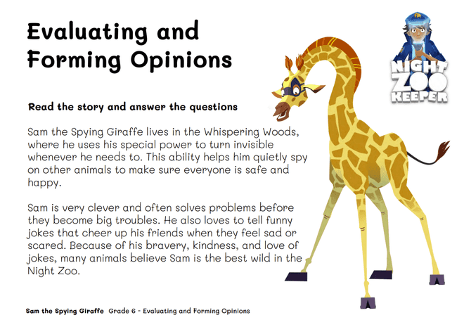 Evaluating and forming opinions helps children become thoughtful, informed readers who don’t just absorb information - they question it, analyze it, and form their own conclusions. These skills are essential for developing critical thinking and preparing for more advanced academic reading and writing.